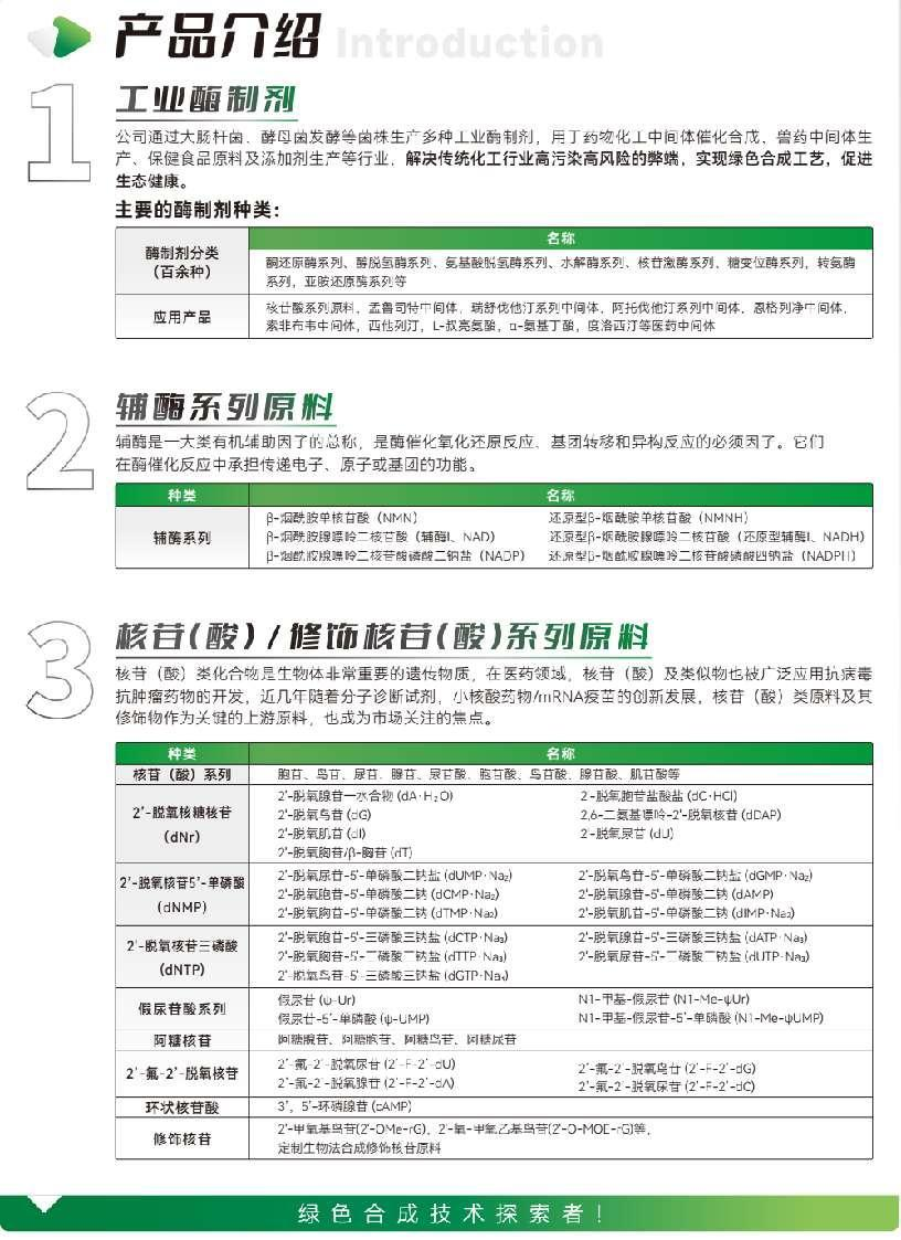 “匯海生物”目前已開發(fā)多品種的生物酶制劑,輔酶系列產(chǎn)品以及核苷酸系列產(chǎn)品: